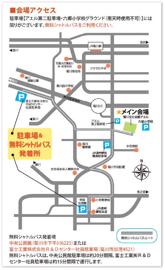 駐車場には限りがございます、シャトルバスをご利用ください。