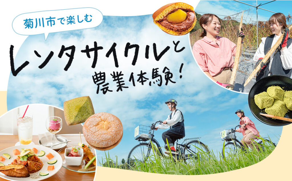 レンタサイクルに乗って菊川市内の各コースを周り自然やグルメ、体験を楽しむコースのご紹介。